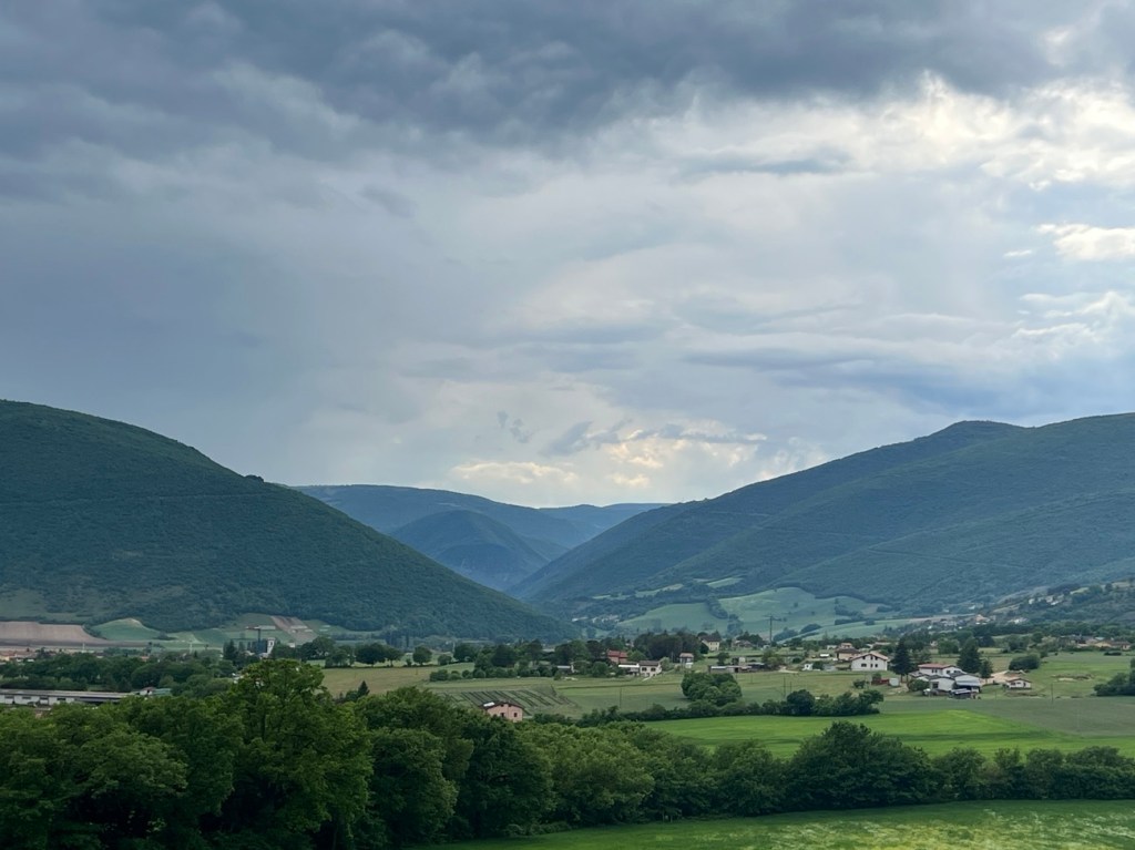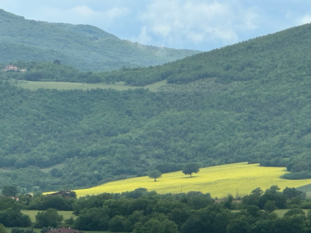 Bread with cheese, French fries hot chocolate, lemon soda and water and we were refueled and ready to go. Added layers and thankfully when we left the rain had stopped. A twisty descent and then a straight line descent going 44 km with stunning views on both sides of the road. Couldn’t stop as it was too cold and was loving the feeling of flying effortlessly. Another climb that was manageable with stunning views and then a 20 km descent. Really nice but then the rain came. Fortunately halfway down. Not too hard but enough to take your time and hard to see out of glasses. We skirted through Norcia and another climb to our agri tourism. Stunning spot. Working farm and winery.